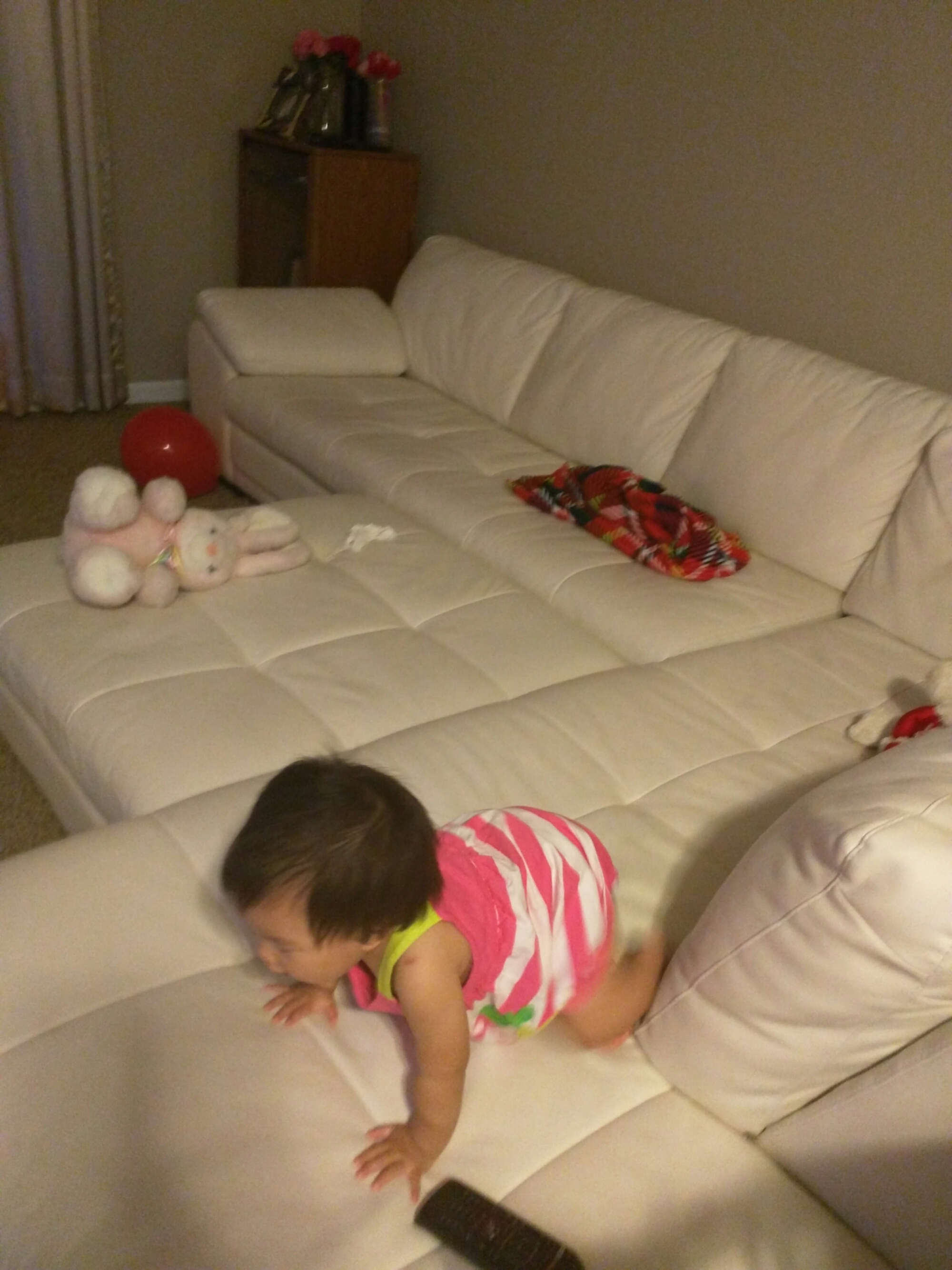 6/29 今天宝贝 1 year appointment, 爸爸妈妈一起带宝贝来医院。今天宝贝可受罪了,打了三针预防针,还抽了一桶血。宝贝都不让体检,一躺下量身高之类的就马上哭。宝贝平常在家躺着换尿布也是哭。医生来检查眼睛听心跳呀宝贝让妈妈抱着还是哭。宝贝今天才18磅,妈妈和医生说几个礼拜前给宝贝称宝贝有20磅呢,他们有称了一次,还是只有18。 宝贝可是越吃越苗条呀。身高体重都在 32% 和35%, 头倒还是挺大,百分之六十多。今天把大厅当 ottoman 搬到porch里,宝贝和妈妈在上面玩,妈妈看会书,宝贝自己站在窗边玩了好久。宝贝因为前两天睡觉掉地上了,所以今天决定把宝贝的床搬到宝贝自己的房间。可是宝贝并不愿意自己睡,晚上睡觉时把宝贝放 crib 里妈妈就和爸爸自己睡觉了,宝贝一直哭,本以为宝贝哭累了会自己睡着的,可是苦了好久好久都没有停,有时候哭一声停一下再哭,最后爸爸妈妈不能睡,就把宝贝抱过来一起睡。宝贝就站在 crib 的护栏,看起来好好笑。