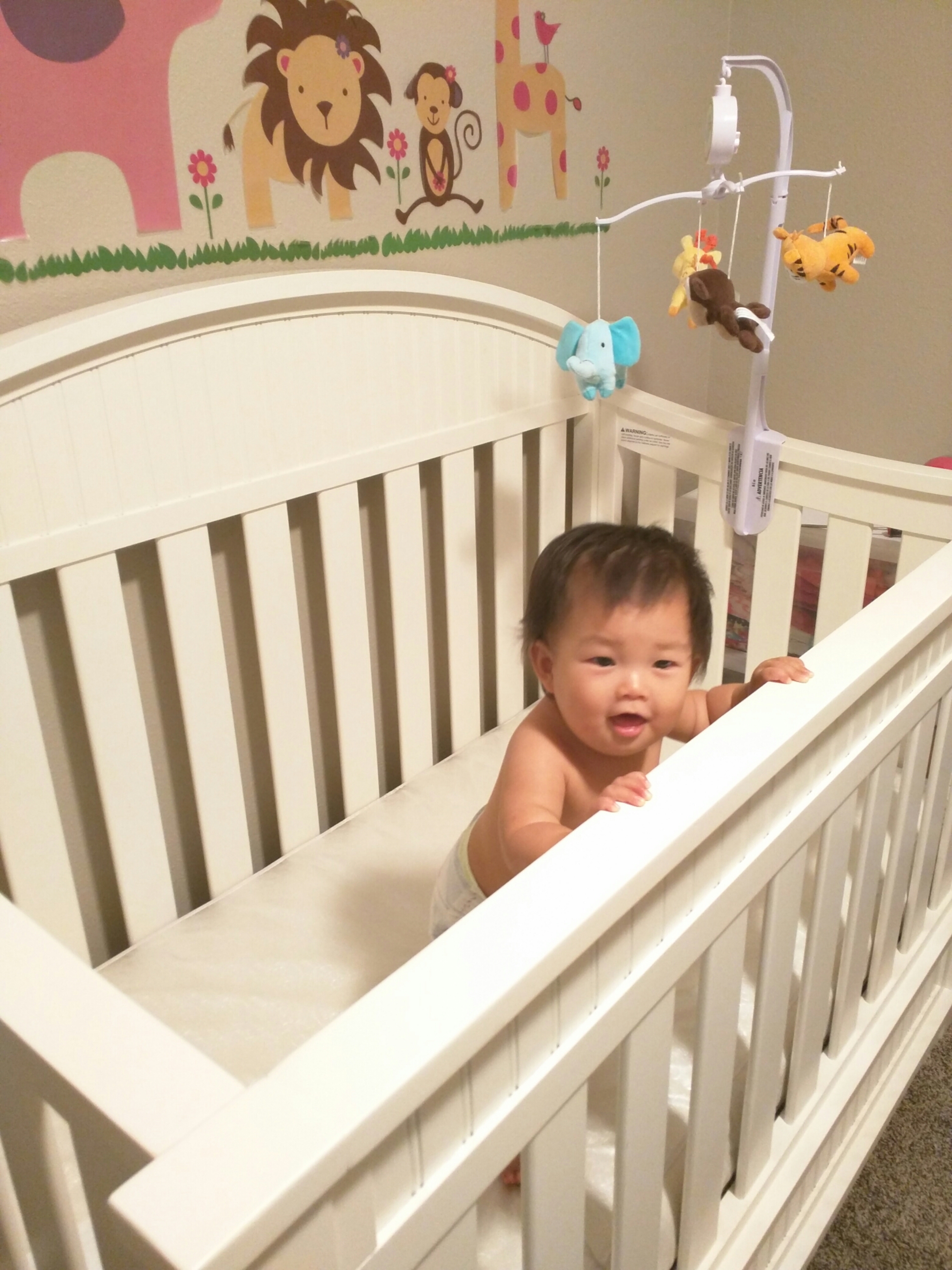 6/30 Missy 说宝贝又长了颗牙噢,宝贝现在有三颗小牙牙。 今天晚饭我们在外面烤虾串吃,妈妈没上班在家串了20根。爸爸好久才烤好,我们在外面吃 veggie straw, 宝贝好可爱,自己把手伸进去袋子里拿出来吃,可棒了。今天晚上宝贝还是不肯自己睡觉,一放下去 crib 还是和昨晚一样一直哭,于是妈妈把灯打开和宝贝好好介绍她的房间。妈妈给宝贝看墙上的画, crib 上的 mobile 动物,然后说这间是宝贝的房间,另一间是爸爸妈妈的房间。介绍了几分钟后妈妈又试着放下去睡,宝贝哭了几声但是就停了吃拇指,妈妈在旁边拍拍宝贝,然后拿 Ipad 放 sleep music 给宝贝听,放到最后都没电了。宝贝竟然一觉睡到天亮真是太棒了。