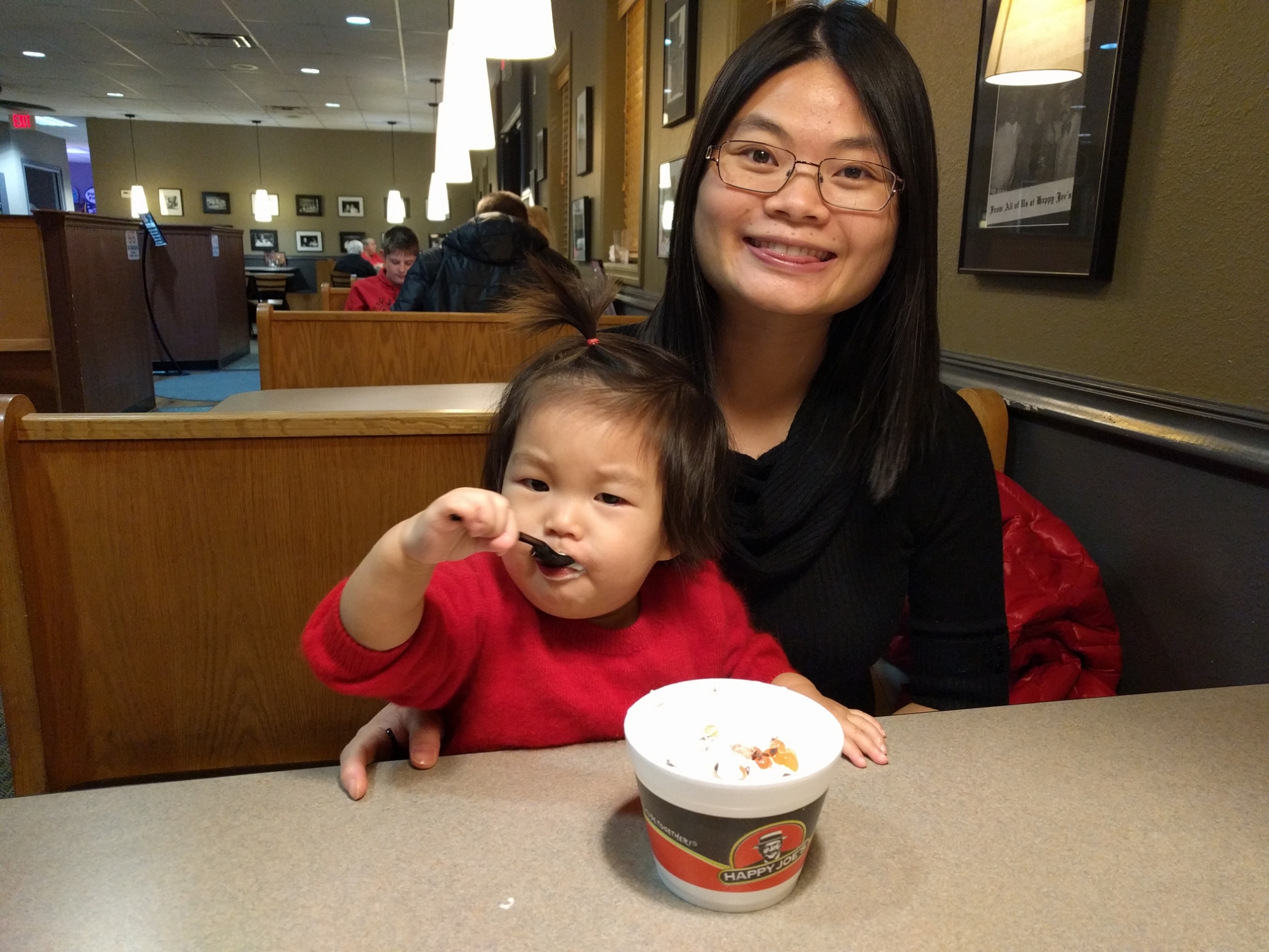 这两天二宝子在妈妈肚子也开始有动静了,18个礼拜就开始踢妈妈了,小调皮。而大宝子也越来越懂事会玩了,自从圣诞节新年旅游回来就不吃奶了。现在叫她亲亲妈妈爸爸她都会来亲。也知道鼻子,嘴巴,眼睛,肚子在哪。喊1,宝贝就会说2, 还会跟着比划手指头