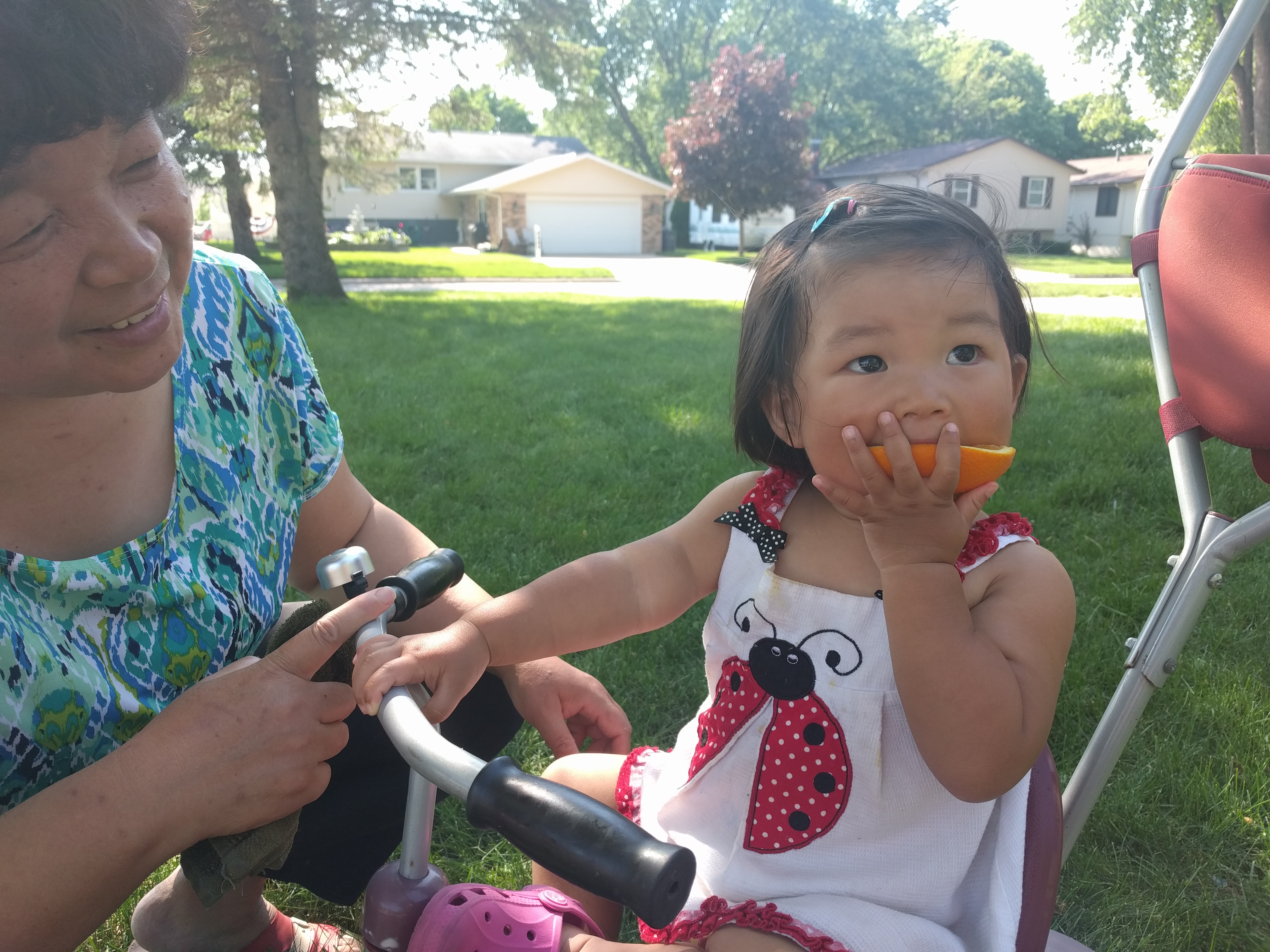 中午爸爸抱着宝贝指着妈妈叫妈妈,宝贝也跟着爸爸指,叫妈妈,叫得特别大声,叫了好多次
