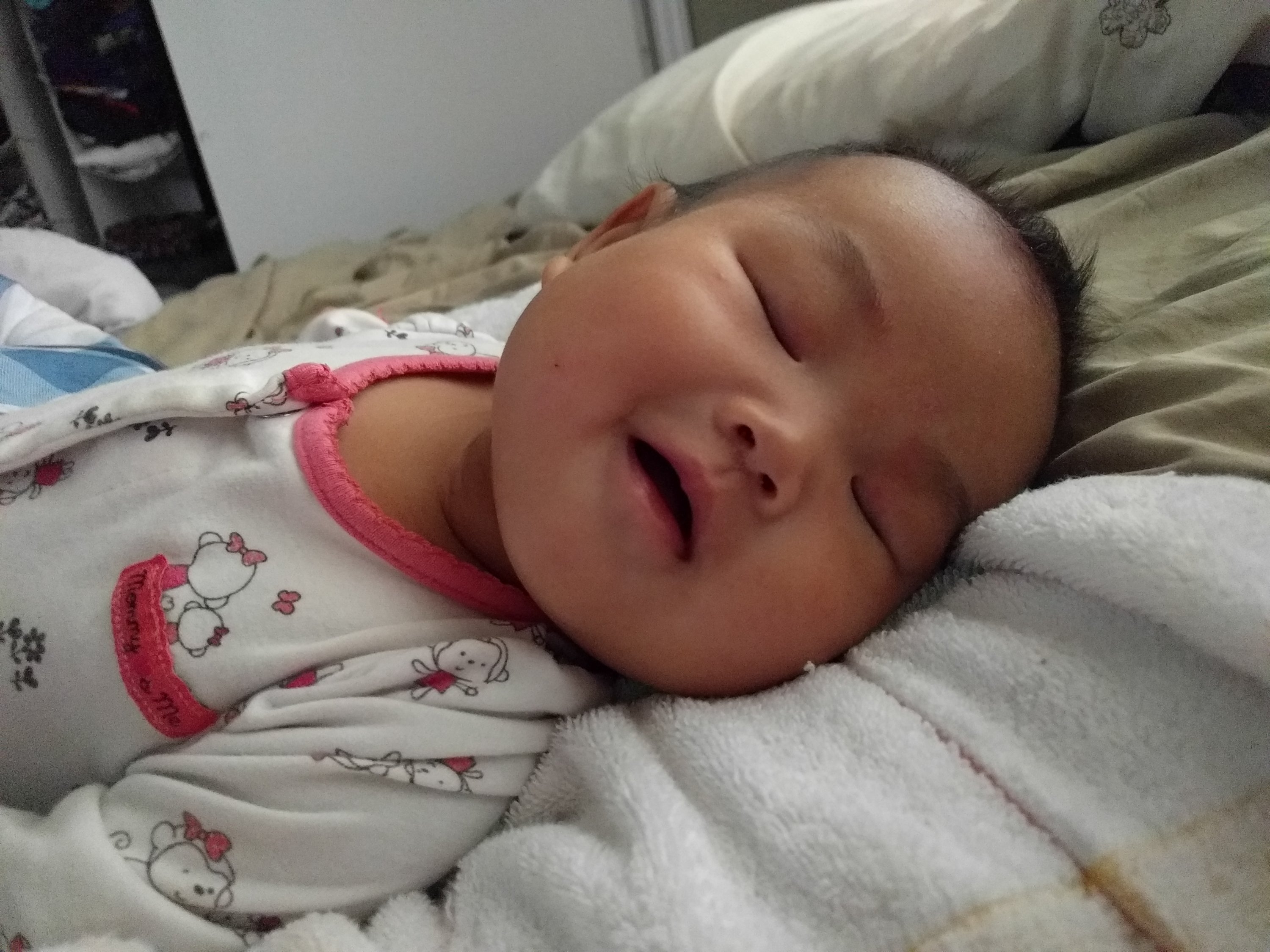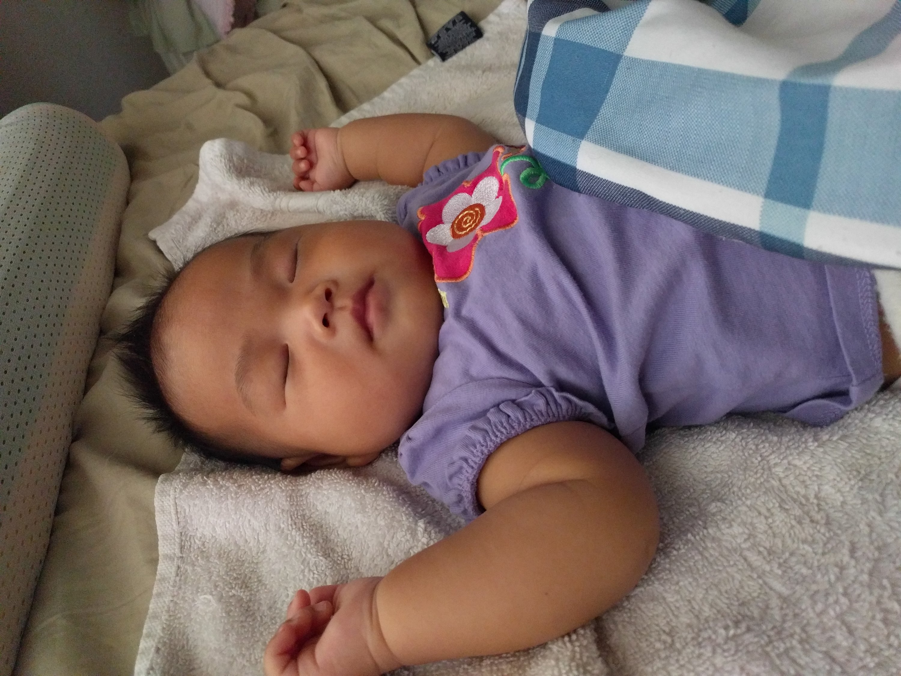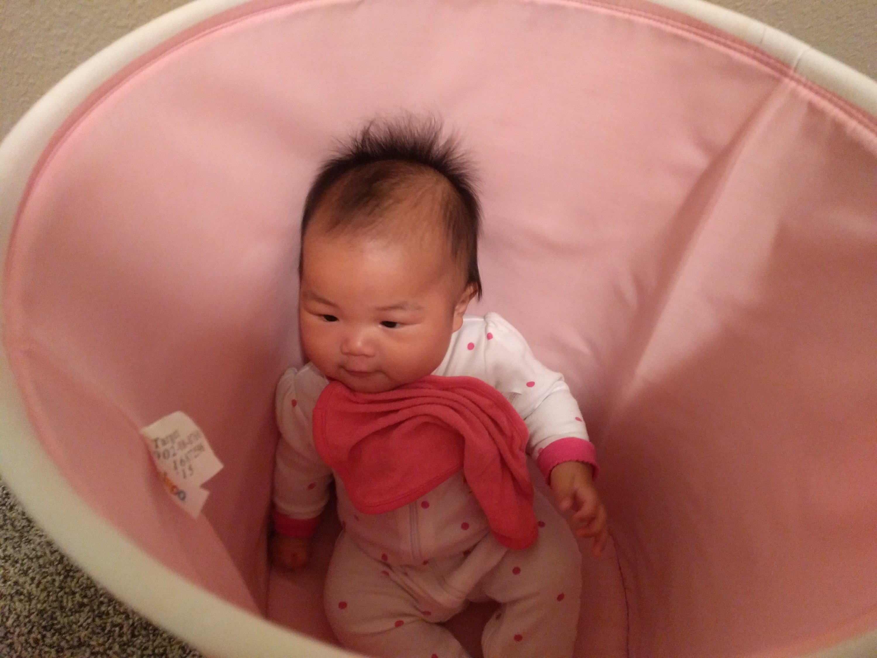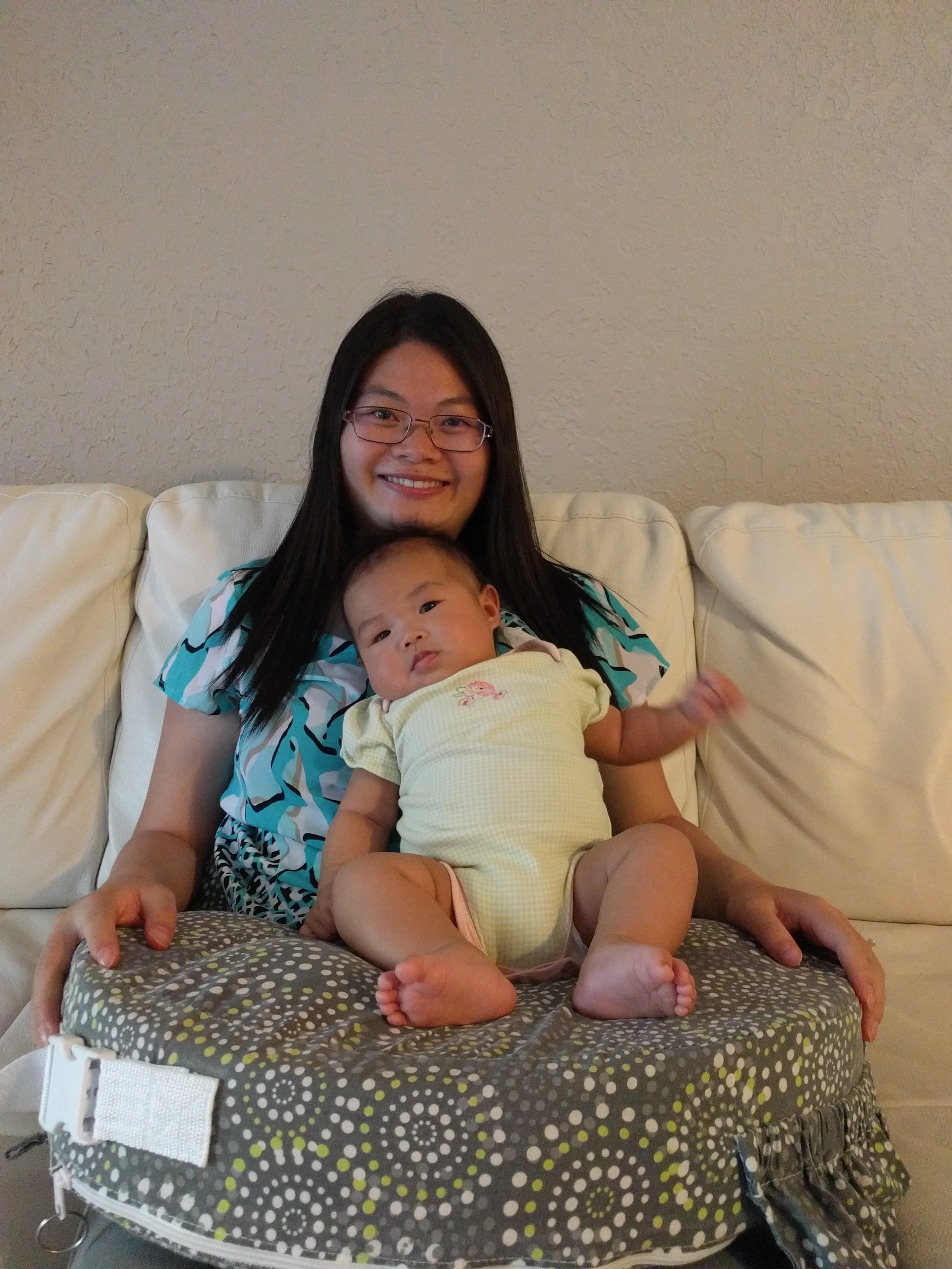 We went to Hyvee to visit mama’s coworker yesterday. She said Kasia looked like eight or nine month old. Kasia does look quite mature because she’s very alert and loves smiling back when someone talks to her. When she wakes up in the morning, she doesn’t cry. She smiles happily right away when mommy looks at her eyes-such a sweet heart.