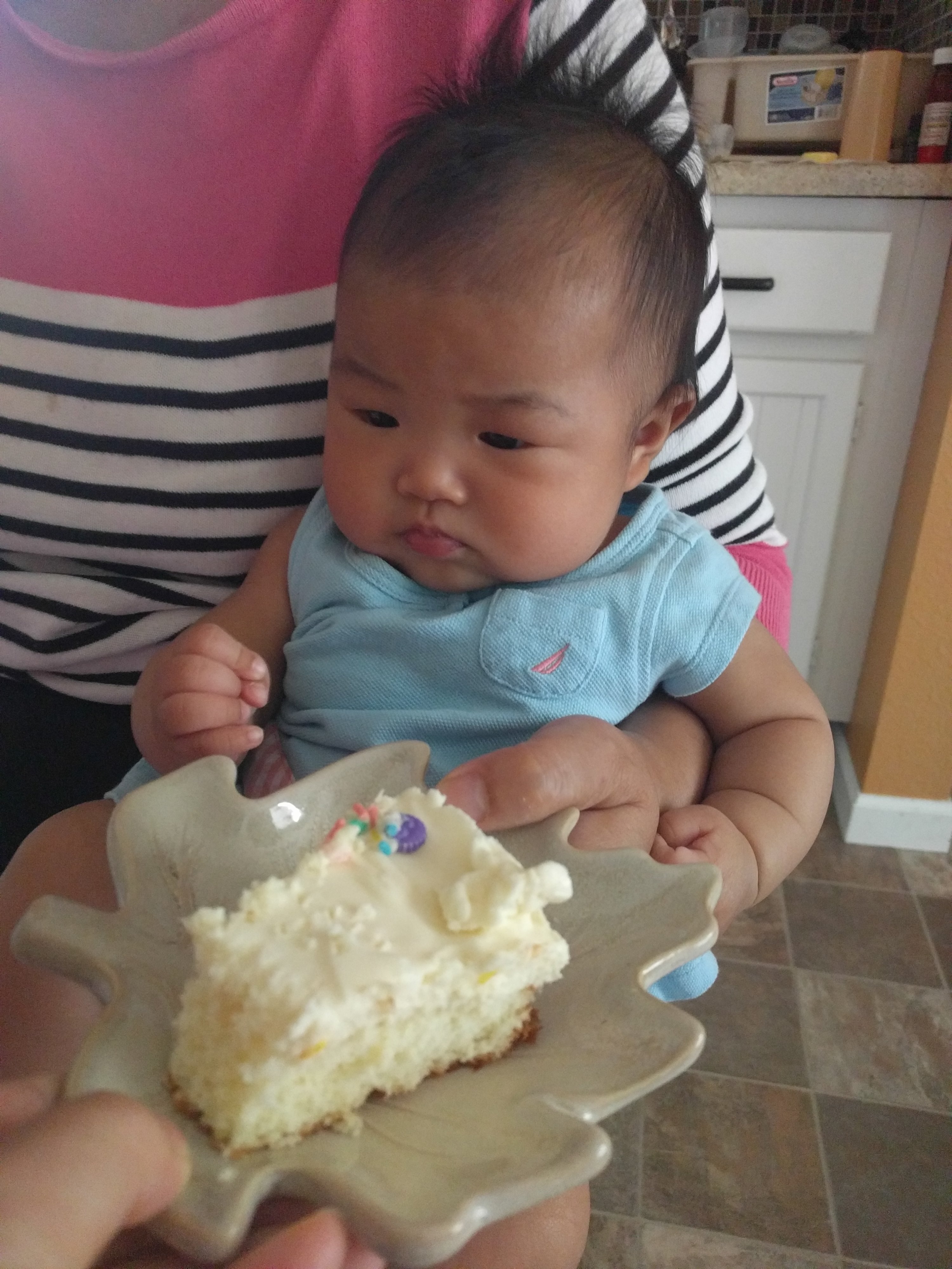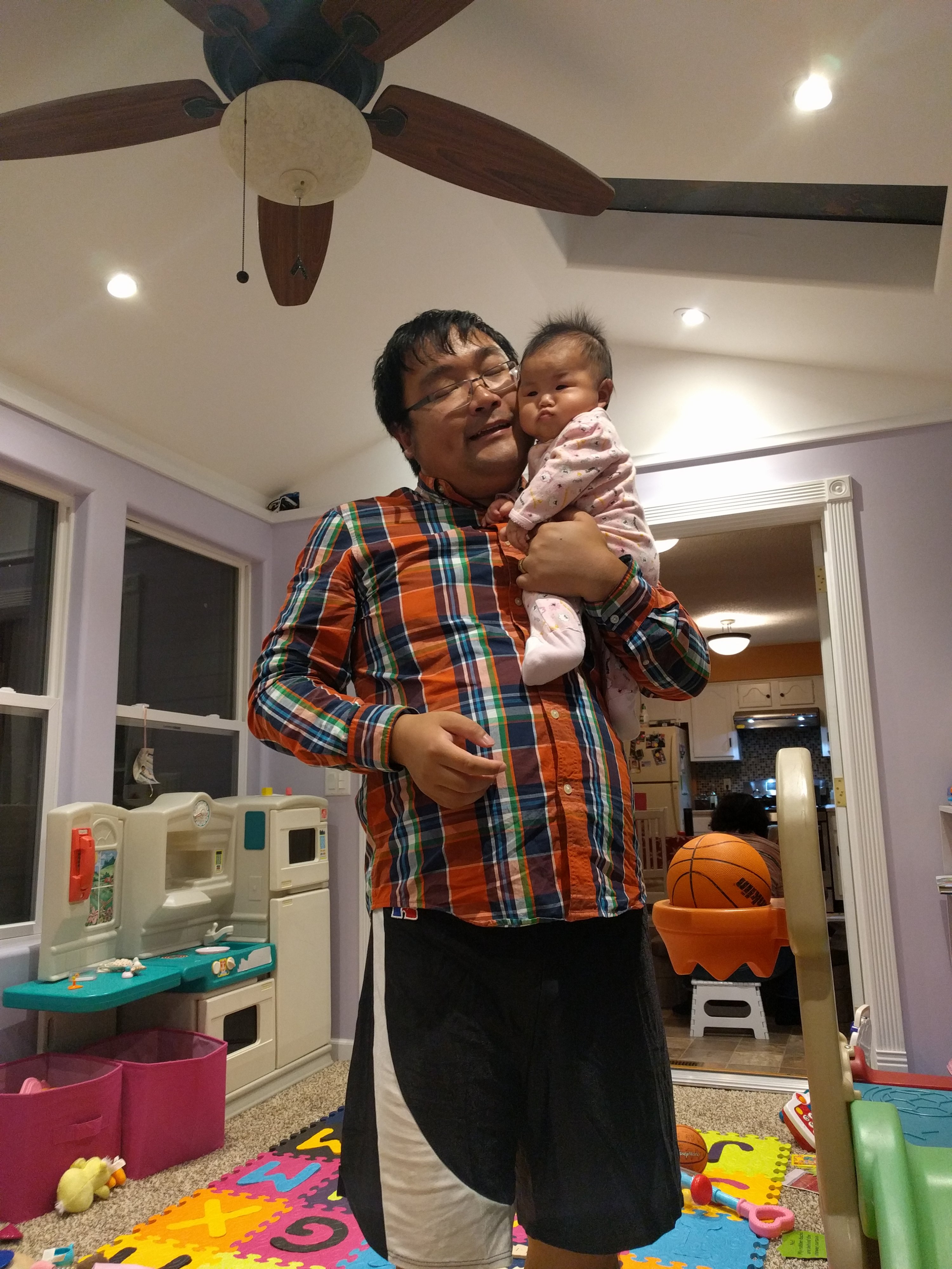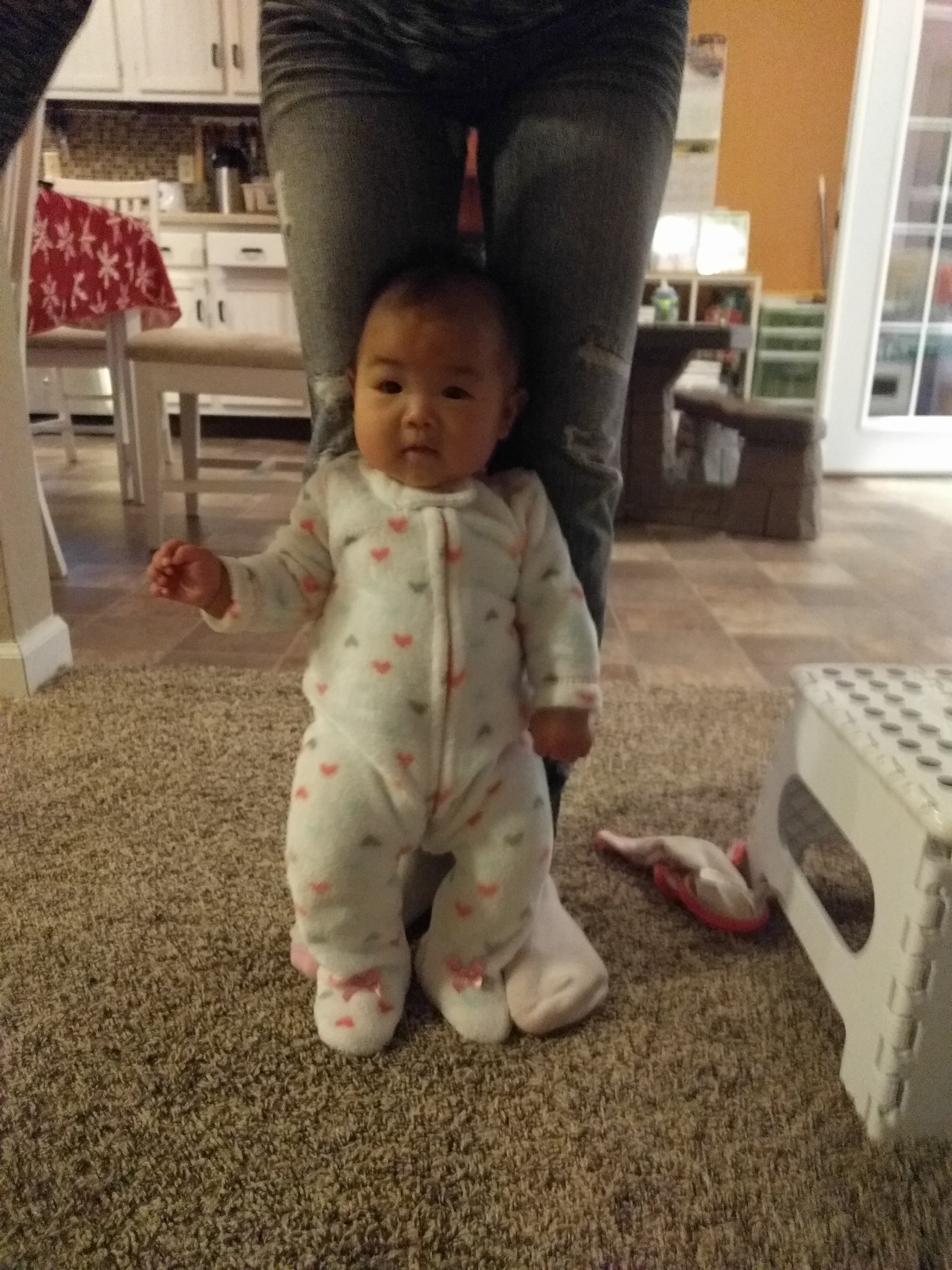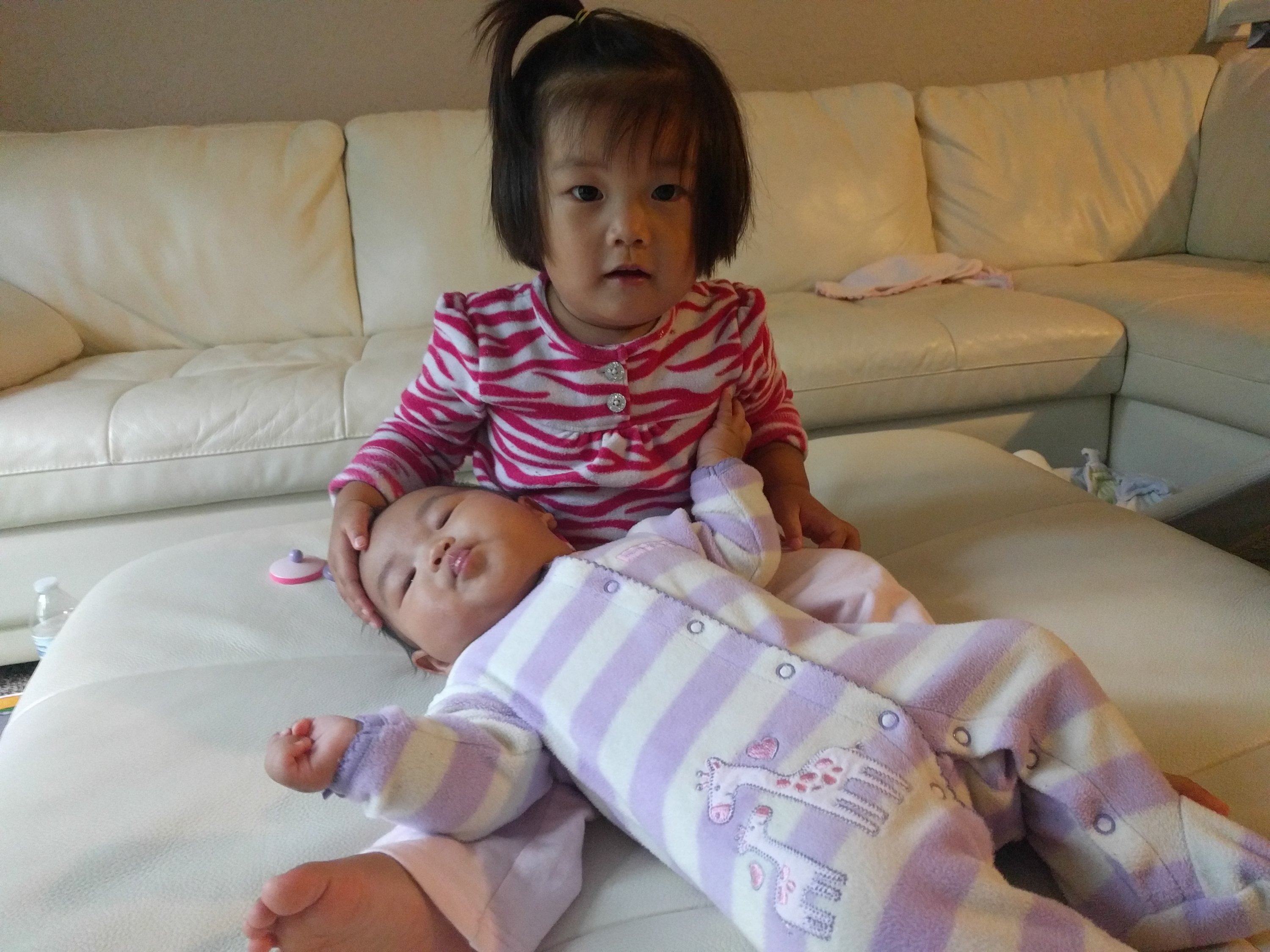 We went to Hyvee to visit mama’s coworker yesterday. She said Kasia looked like eight or nine month old. Kasia does look quite mature because she’s very alert and loves smiling back when someone talks to her. When she wakes up in the morning, she doesn’t cry. She smiles happily right away when mommy looks at her eyes-such a sweet heart.