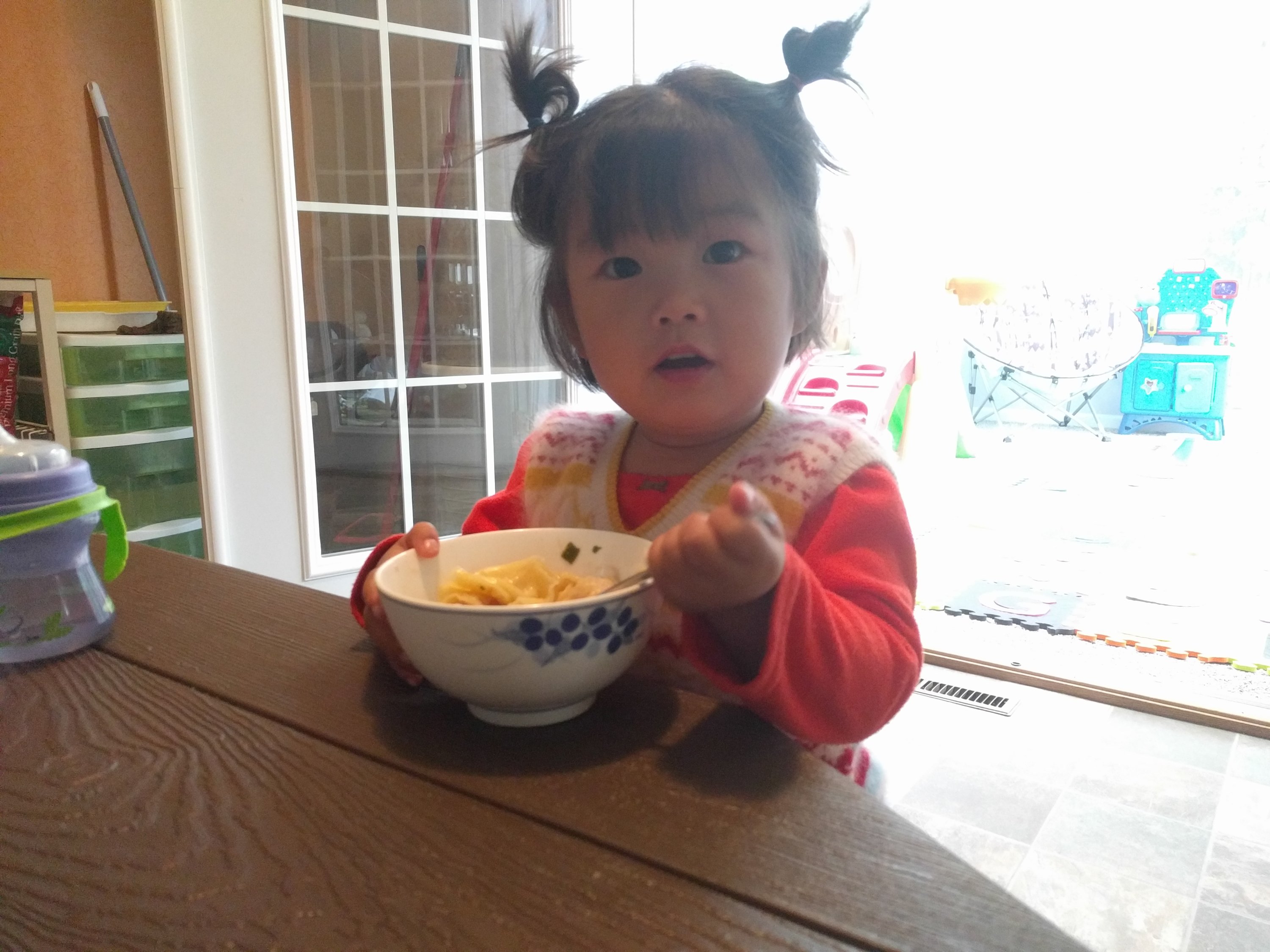 Li Qian and Reesie came to our house today, when they went back home. Nianai told Charlotte 阿姨回家睡觉 and she kept saying 阿姨睡觉(auntie go home sleep) today. Mama went shopping with waipo today, after we came back with a lot of healthy market products, Charlotte put her thumb up and said 妈妈真厉害 (mama is awesome) for a few times. She also showed Mama her bear music player saying 妈妈这个坏了( mommy this is not working)because it wasn’t turned on. Mama asked “who repairs then”, she said 爸爸修 (Baba repairs). she has been saying so many words lately. We went to bible study tonight and she didn’t even take her shoes off tonight.